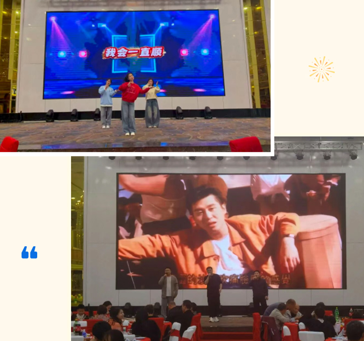 燈光漸次亮起,當(dāng)大屏幕上開始播放一段段服務(wù)年限視頻,所有人的目光都被深深吸引。鏡頭前,一張張熟悉的面孔,一幕幕往昔的工作場景—這些畫面串聯(lián)起的,不僅是公司的發(fā)展軌跡,更是每一位拓天人用青春與汗水書寫的奮斗詩篇。視頻的最后定格在"感恩同行"四個字上,溫暖而有力,為即將開始的工齡獎頒發(fā)環(huán)節(jié)拉開了深情的序幕。