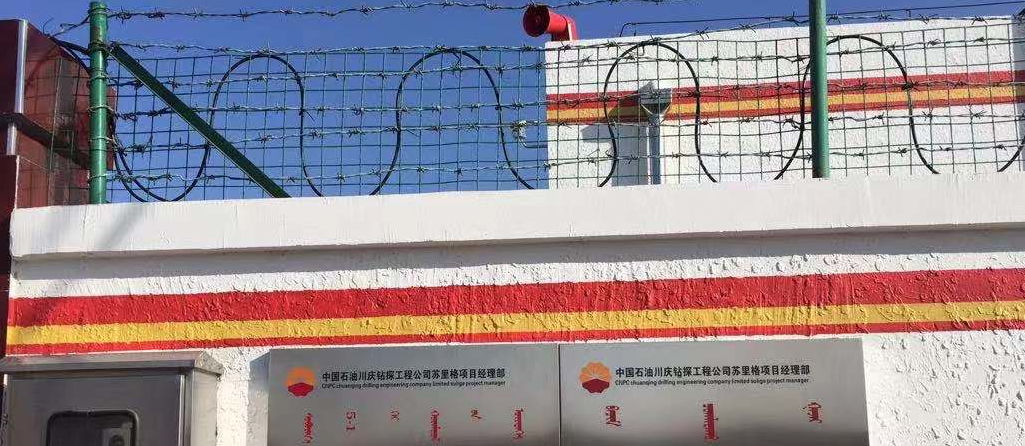 u 墻頂鋪設(shè)噴塑鋼絲網(wǎng)??筛鶕?jù)墻頂實(shí)際情況做適當(dāng)?shù)脑煨?,盡量做到美觀。
