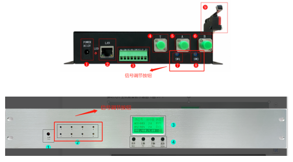 ②查看從終端防區(qū)包熔回來插入設備A、B光接口的尾纖是否有出光,正常應該要看到閃爍紅光。(這里若A、B尾纖光纖接頭看不到回光則檢測尾纖熔接的光纖是否有回光,若有則重新熔接尾纖)